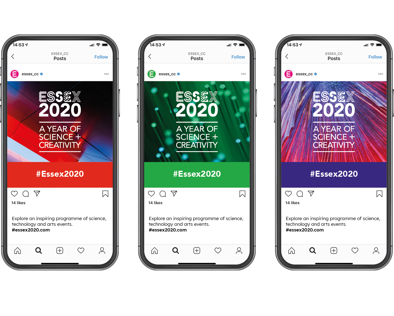 Each letter of ESSEX was depicted graphically to tie in with its relevant STEAM area. To further the theme of innovation and cutting-edge technologies, the identity was supported by a selection of curated images which inspired curiosity and blurred the lines between each of the five areas. Together, they formed the visual language to express the connections and influences between science and art to create ‘wonder’.