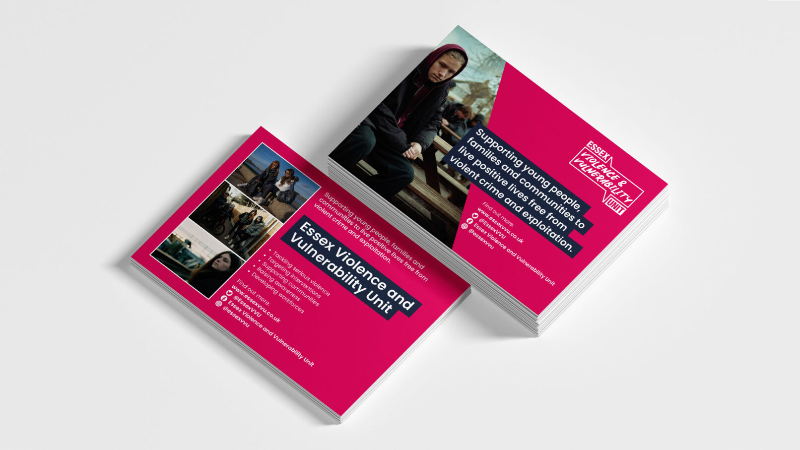 The Essex Violence and Vulnerability Unit (EVVU) was set up in 2019 to support direct work with young people at risk of violence, provide training and development to those who are on the front line and raise awareness with the general public about the dangers of County Lines. As the Unit grows in size and reputation, a refresh to its brand identity was required for better gravitas and appeal to its’ target audience of children, young people, parents and professionals.
