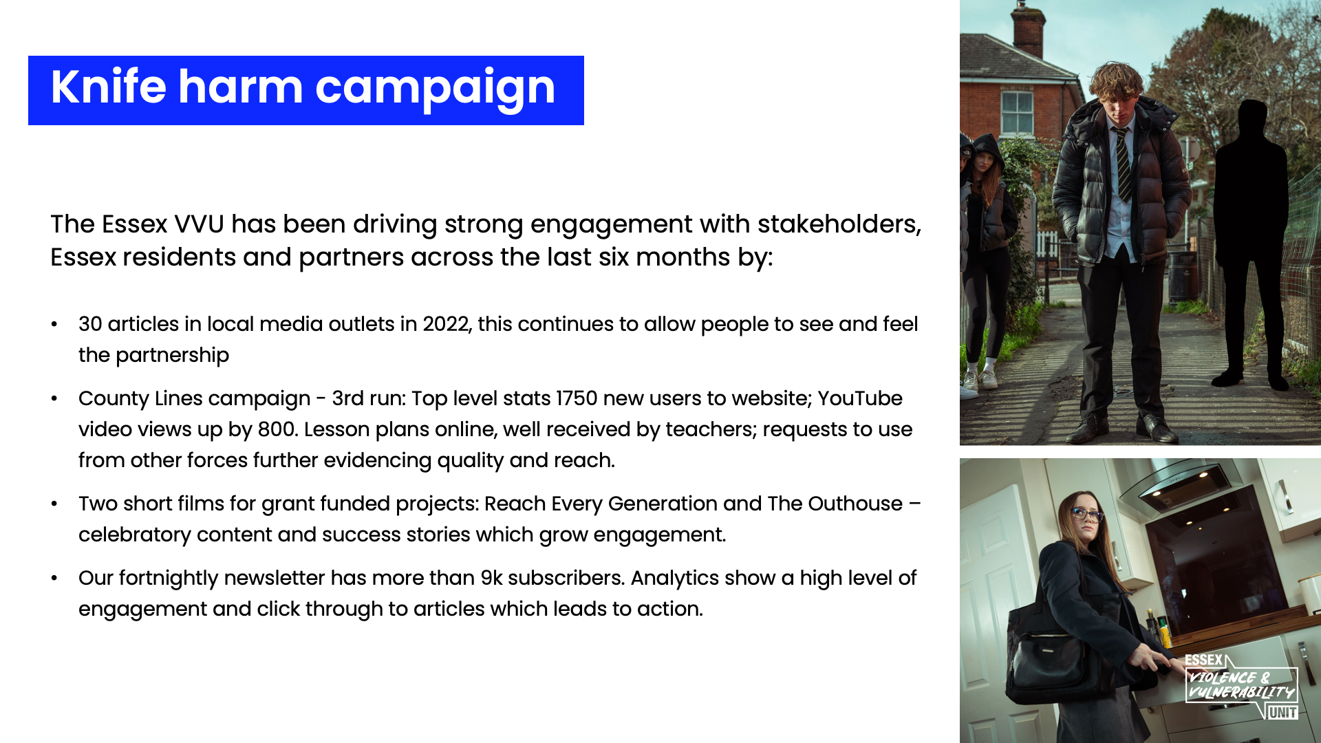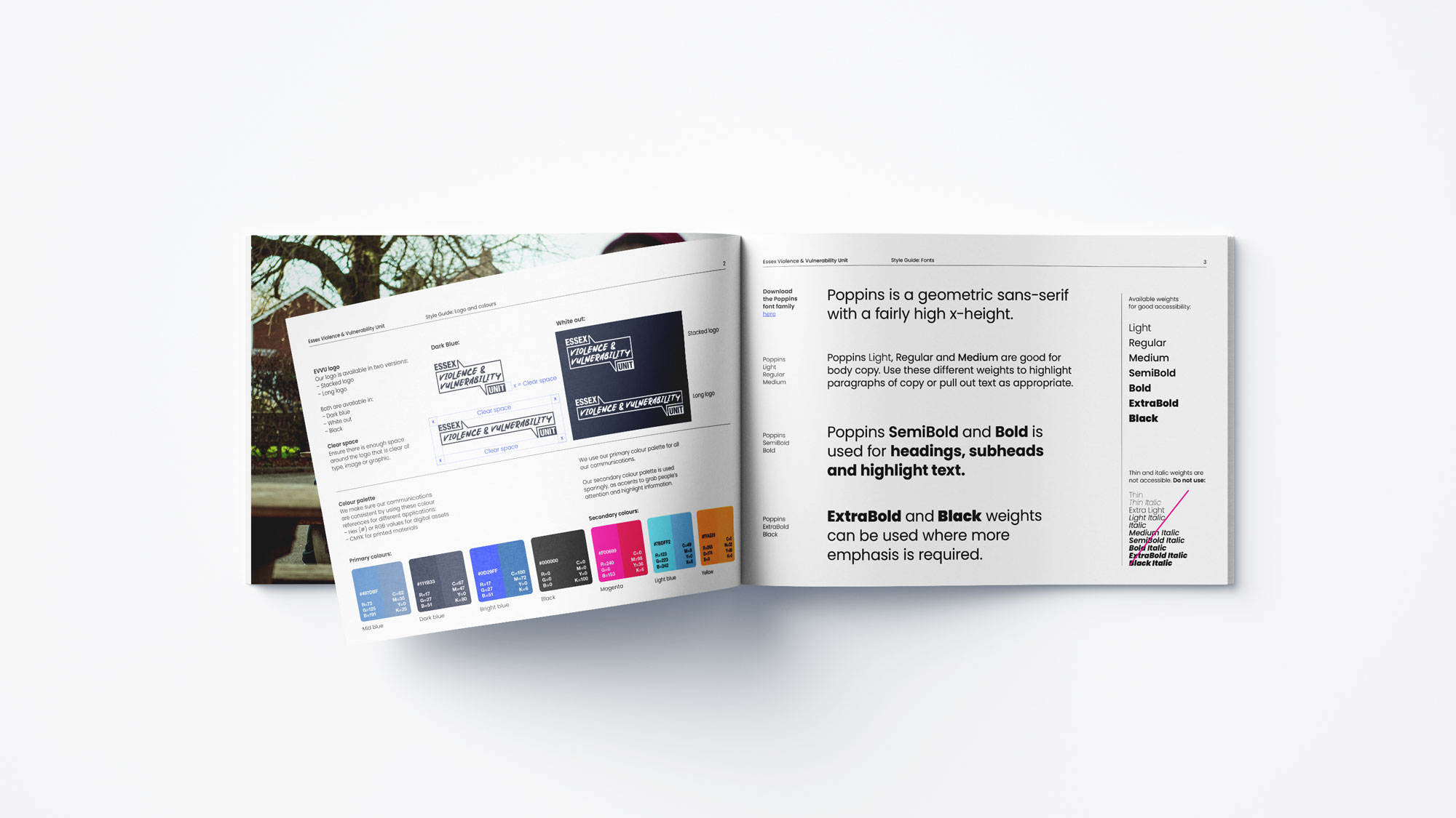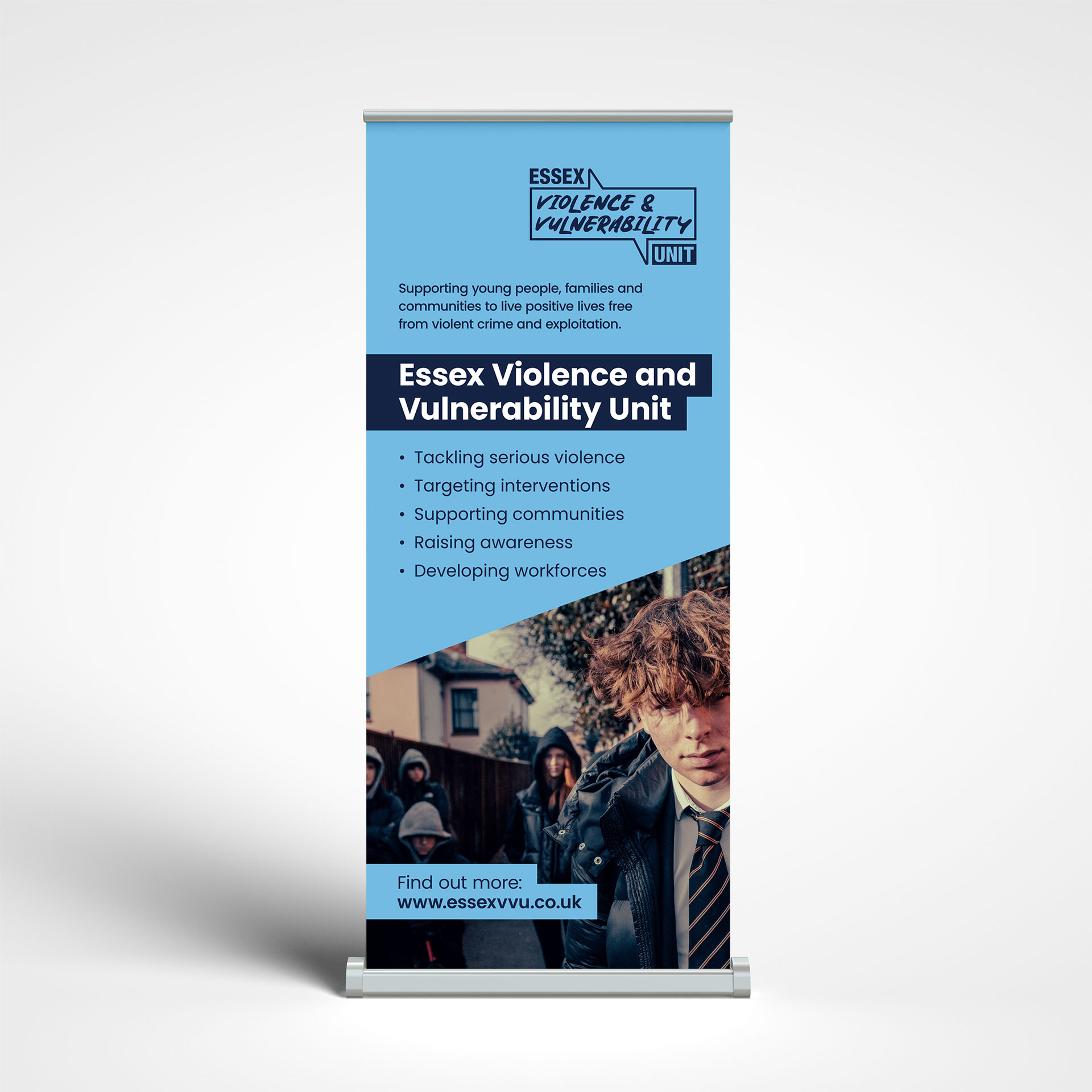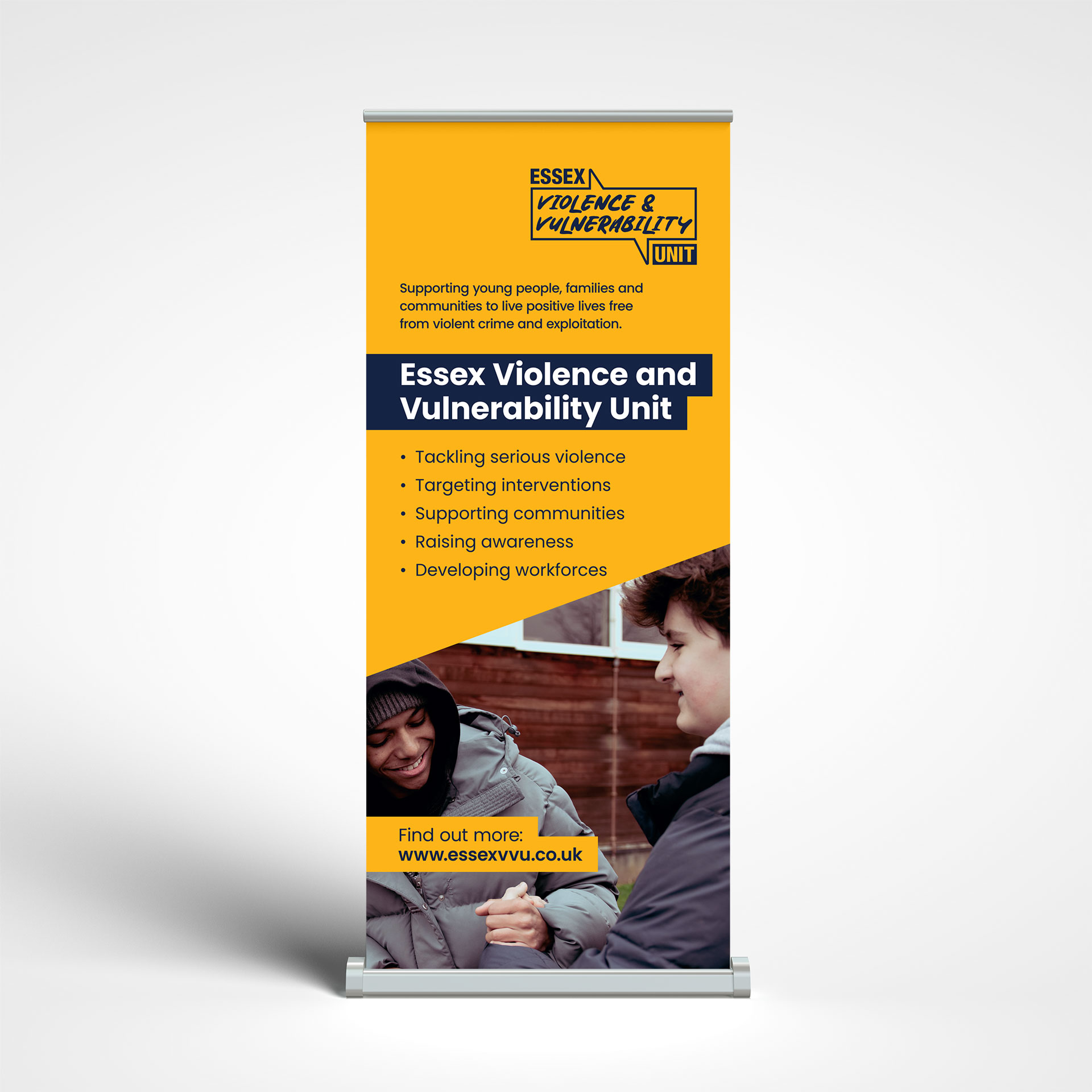 The Essex Violence and Vulnerability Unit (EVVU) was set up in 2019 to support direct work with young people at risk of violence, provide training and development to those who are on the front line and raise awareness with the general public about the dangers of County Lines. As the Unit grows in size and reputation, a refresh to its brand identity was required for better gravitas and appeal to its’ target audience of children, young people, parents and professionals.