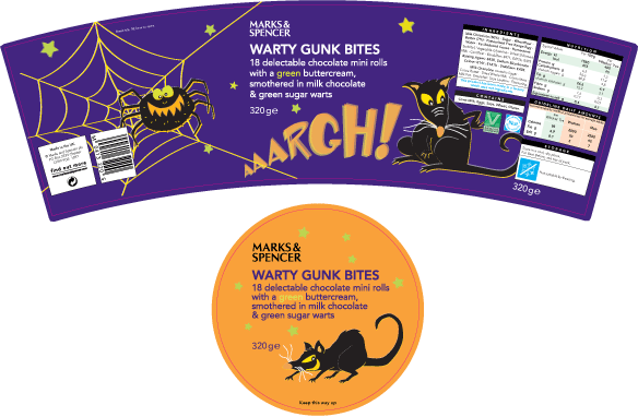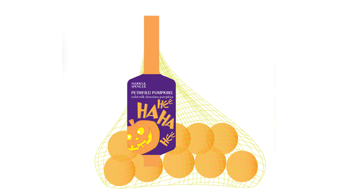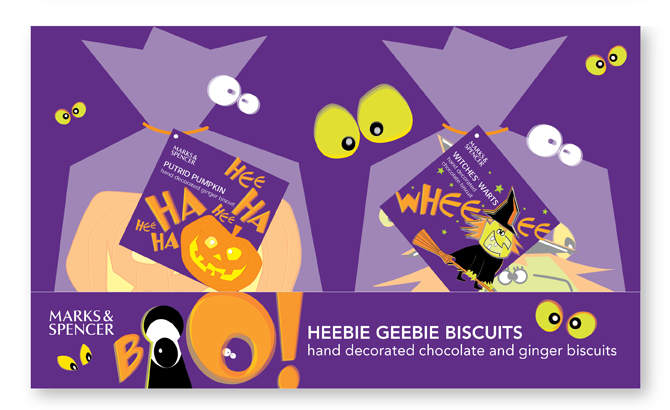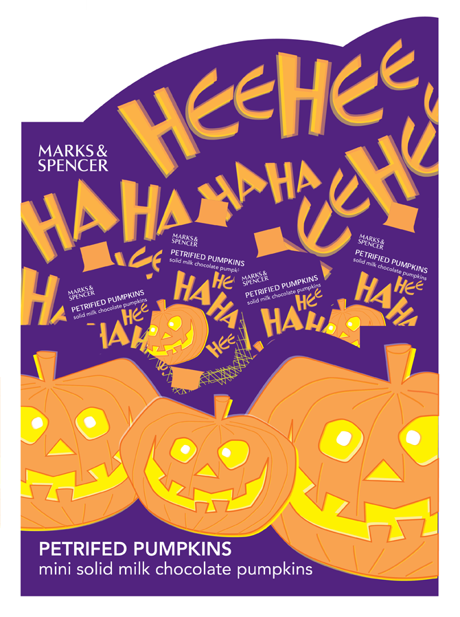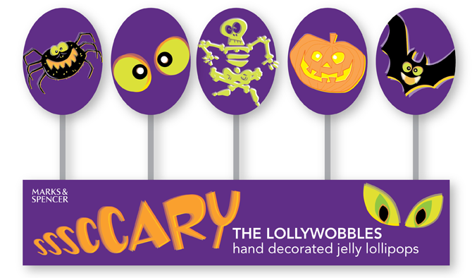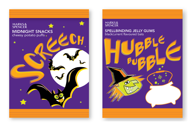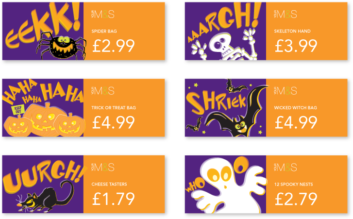 Visual graphic language for Halloween seasonal campaign, encompassing illustration and typographic treatment for packaging and in-store communication and POS.